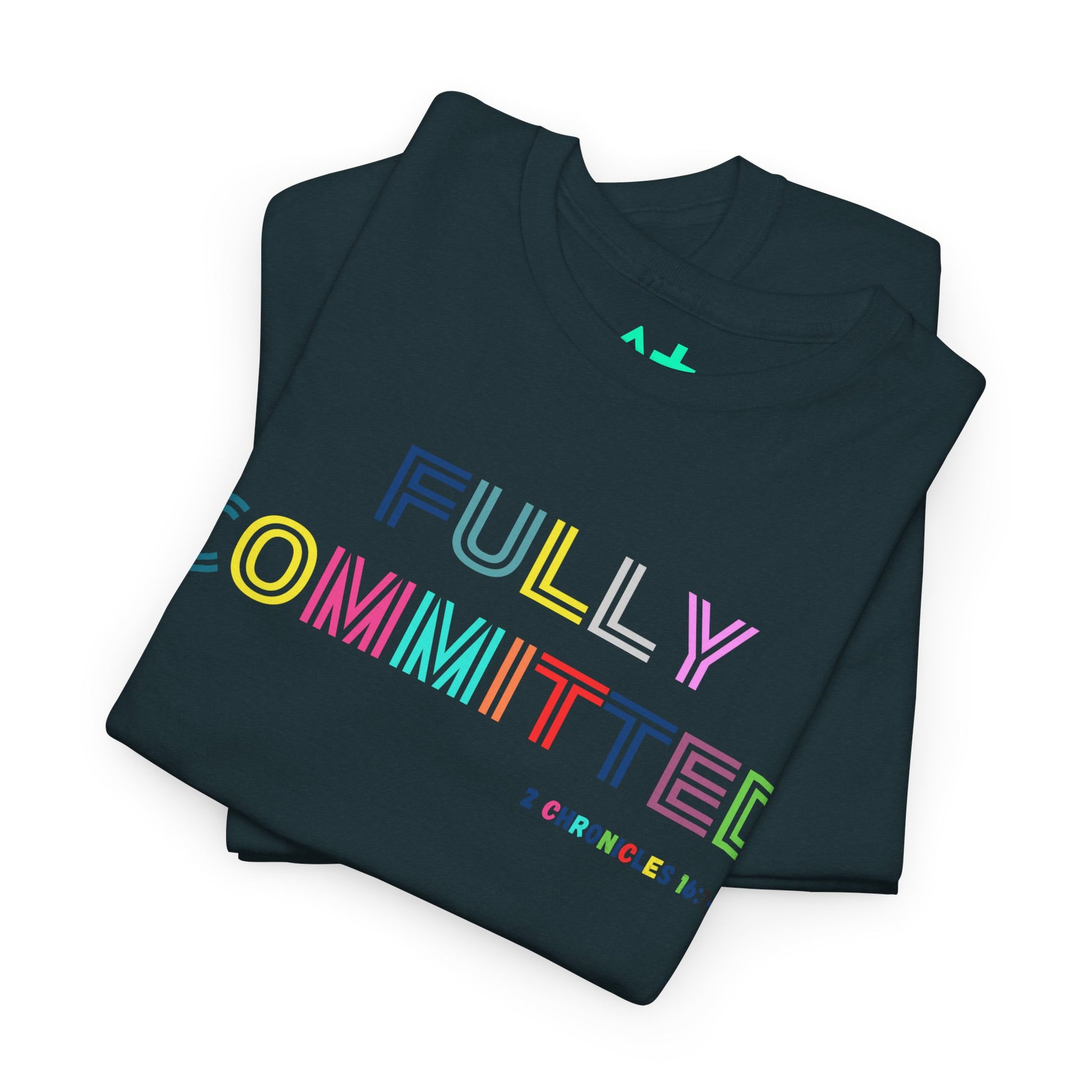 Multicolor Fully Committed Tee with Scripture on back